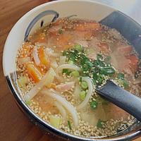 すりごまの香ばしさが特徴的な優しい味わいのうどんです。大根、白菜、人参などの野菜をたっぷり入れて、身体の芯からポカポカに。味付けは味噌とごま油で、最後に温泉卵をのせるとまろやかな口当たりに仕上がります。お好みで豚バラ肉やきのこ類を加えてアレンジも可能。冷蔵庫の余り野菜消費にも活躍する、簡単で栄養満点の一品です。
