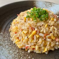 カニカマで作るチャーハンのご紹介です。具材はカニカマと卵だけなのに、とてもおいしく仕上がりますよ。短時間で短時間に作ることができますので、ぜひお試しくださいね。