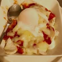 半熟卵とサラダチキンのドリア風 レシピ・作り方