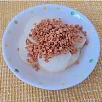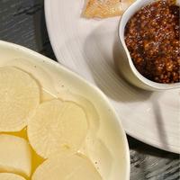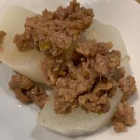肉味噌はひき肉の代わりに大豆ミートミンチを使い、すりおろししょうがも入れました。大根の味が薄いですが美味しかったです。