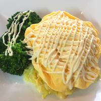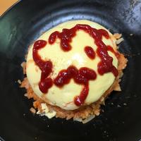 - 5 器に3を盛り付け、4をのせ、ケチャップをかけて完成です。