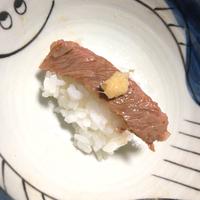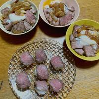 初めて湯煎でローストビーフを作ってみたので、ローストビーフ丼プラス手毬ずしにしてみました。