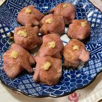 薄くスライスしたローストビーフと酢飯の相性が抜群で、お酒の締めにもピッタリな一品です。ひと口サイズで食べやすく、生姜やネギを添えれば風味も豊かに。わさび醤油やポン酢など、好みの味付けで楽しめる華やかな手まり寿司に仕上がります。市販のローストビーフでも手作りでも美味しく、パーティーやおもてなしメニューとしても喜ばれること間違いなしです。