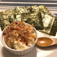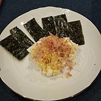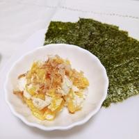 - 3 お皿にのりを添え、器に盛り付けてかつお節を散らして完成です。