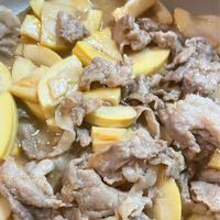 - 1 筍の水煮と豚肉は食べやすいサイズに切ります