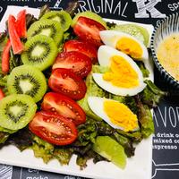 フレッシュなレタスにクリーミーなアボカドなど、メインディッシュにもなる具だくさんなボリューム満点のサラダです。コブドレッシンングの少しスパイシーで濃厚な味わいが、サラダを引き立ててくれます。野菜をたっぷり食べたい日におすすめです。
