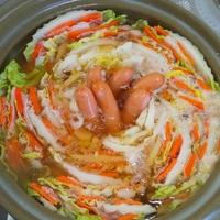 白菜・人参・豚肉の3層にして、真ん中の隙間にソーセージを入れてアレンジしてみました❗️