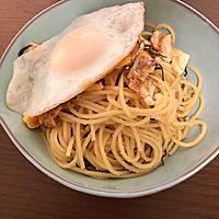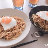 スパゲティのゆで時間はパッケージに記載されている時間を目安にしてください。 今回は5倍濃縮タイプのめんつゆを使用しました。2倍濃縮タイプの場合は大さじ1で代用してください。 ご高齢の方や、2才以下の乳幼児、妊娠中の女性、免疫機能が低下している方は、しっかりと加熱し卵の生食を避けてください。