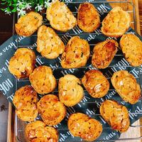 サクサクとした食感のラスクに、アーモンドスライスたっぷりのフロランタンをのせて焼き上げました。サクサクのバゲットにキャラメル化した甘い生地がとてもよく合います。サブレ生地のフロランタンもおいしいですが、お手軽にお作りいただけますので試してみてくださいね。