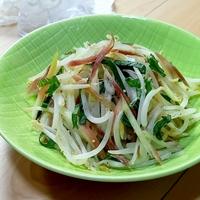 - 1 耐熱ボウルにもやしを入れラップをかけ600Wのレンジで2分加熱します。
