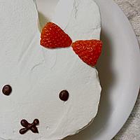 ミッフィーの形に切って生クリームをナッペしました。いちごのリボンがお気に入り。サンドもいちごです。