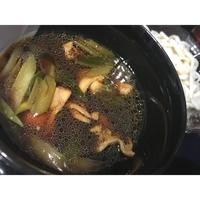 かけそばにしました!焼き目をつけたあと、少しだけタレで追い炒めしてからスープへアレンジしました。とっても美味しくてスープ全部飲んじゃいそうです!