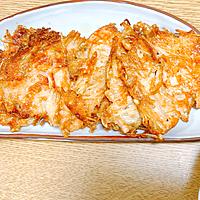 たらこの消費に。ひっくり返すのが難しかったので、厚めがいいかも?チーズのおこげもあって美味しく、いい感じのもう1品になりました。