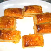 すごく簡単でした。17cm×10,5cmのパイシートを6等分に切りました。最後しっかり巻き付けないと焼いた時はね上がってきます。熱いうちに食べるとサクサクでもしっとりしていておいしかった。