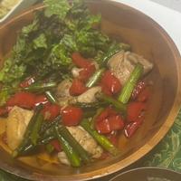 なので、アスパラガスとパプリカ以外は鶏もも肉を皮なしで500g、にんにく小3片に増やして作りました☺️