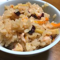 タコが思いのほか高かったので😅、一合半にしてみました。ホタテ缶を使って旨味を足し、しめじもたっぷり入れて季節感も出しました。美味しいっ!