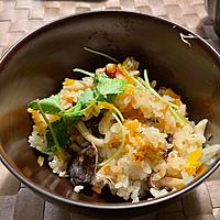 - 4 炊飯が終わったら、しゃもじで切るようにふっくらと混ぜ合わせ、茶碗に盛りつけ、小ねぎを散らし完成です。