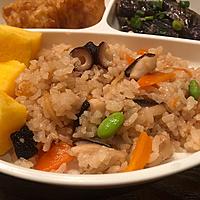 頭も小さめに切って入れ、冷凍枝豆は流水解凍し炊き上がってから投入。この方が豆の味しっかり。米は3合で2合分の調味料。薄味好みの私にはちょうど良く美味しかったです。