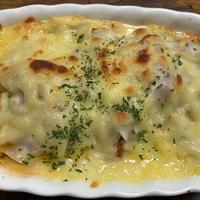 ホワイトソースがなく味を整えて作りました。餃子の皮が隠れるくらいチーズをのせたほうが味も見た目も良いかもです。