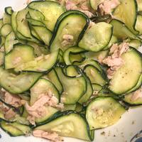 ズッキーニとツナの簡単和えサラダです。 ズッキーニを塩もみすることで、ツナの油をよく吸ってくれて、美味しく召し上がれます。 味付けは塩と黒こしょうのみなので、シンプルな一品です。 とても美味しいのでぜひお試しください。