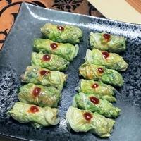 餃子の肉だねを白菜に包んで電子レンジでできる簡単餃子です。しっかりと味付けをしてますので、何もつけなくてもおいしくお召し上がりいただけます。白菜の食感がアクセントになってごはんが進み、お酒にもよくあいますよ。火を使わないので、料理初心者の方にもおすすめです。ぜひお試しくださいね。