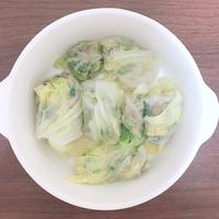 - 2 白菜は芯の部分と葉の部分に分けます。葉の部分はラップに包み、500Wの電子レンジで2分程加熱をします。