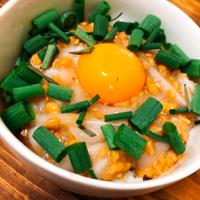 - 2 ごはんを盛った茶碗に1を盛り付け、卵黄をのせ、小ねぎを散らして完成です。