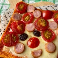 お使いのトースター機種によって焼き加減が異なりますので、様子を見ながらご調整ください。今回は1000W200℃で焼いています。トースターは庫内が狭く、食材と熱源の距離が近いため、加熱中の食材の油が落ちたり、油はねなどが原因で発煙、発火の恐れがあります。加熱中は目を離さないでください。 ピザソースの代わりに、ケチャップやマヨネーズを使ってもおいしいです。