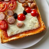 トマトとウインナーのピザトーストを、かわいいニコニコ顔にしてみました。 ニコニコ笑顔が食卓にあると、元気が出ます! 朝食にピッタリなメニューです。 ハムやピーマンなどでデコレーションしてもかわいく、おいしくできます。