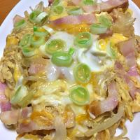 - 4 卵がお好みの固さになったら火から下ろし、ごはんをよそった丼ぶりに乗せ、のりを散らして完成です。