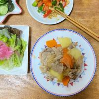 じゃがいも・人参・玉ねぎは3分程先にレンチンし、白滝をプラス、醤油は昆布醤油を使用、豚肉を炒める時にすりおろし大蒜も少量入れてみました。
