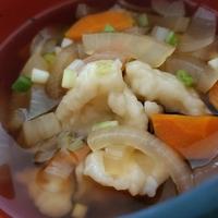 玉ねぎ、にんじん、長ネギを入れて作りました。出汁も優しくどこか懐かしい味ですいとんはモチモチで美味しかったです☆また作りたいと思います。
