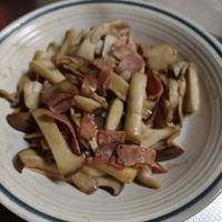 きのことベーコンのバタポン炒めのご紹介です。バターのコクとさっぱりとしたポン酢がしめじやまいたけに染みて、とてもおいしいですよ。ベーコンから出る旨味もきのこのおいしさを引き立てます。