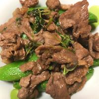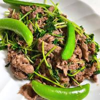 牛肉とスナップえんどうと豆苗の甘辛炒め レシピ・作り方