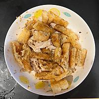 - 1 中火で熱したフライパンに油揚げを入れて、表面にこんがりと焼き色がつくまで5分ほど焼き、火から下ろします。粗熱を取り、縦半分に切り、さらに1cm幅に切ります。