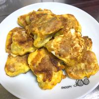 - 5 3の溶き卵にくぐらせ、フライパンで火が通るまで焼き、これを2~3度繰り返します。