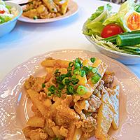 じゃがいもレンチンしましたが全然固かったようで、仕方なくフライパンの蓋をしてしばらく蒸し焼きにしました。次回はレンジ後のチェックをちゃんとします!