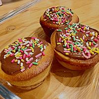 ホットケーキミックスで作るデコマフィンのご紹介です。ホットケーキミックスを使って焼き上げたマフィンに、溶かしたミルクチョコレートとチョコスプレーをデコレーションしました。とても簡単なのにかわいらしく仕上がります。ぜひお試しください。