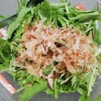 簡単で美味しかったです。なじみの良いごま油とポン酢の風味に鰹節の旨味が効いていて箸がすすみますね。水菜のシャキシャキ食感も◎。