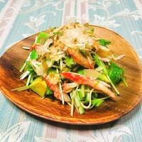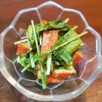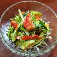 夕食のもう一品に、アボカドとカニカマのおかかポン酢和えはいかがですか。水菜のシャキシャキとした食感がアクセントになり、箸がすすむ一品ですよ。少ない材料でお手軽にお作りいただけますので、ぜひお試しくださいね。