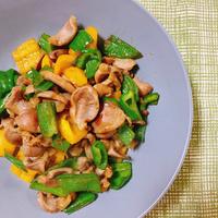 - 5 ピーマンに火が通ったら(A)を加え中火で炒めます。