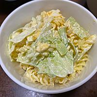 どんぶり2つ分(写真のお皿で4つ分)出来て「多いな」と思ってたら、マカロニのみ2倍量茹でちゃってました。