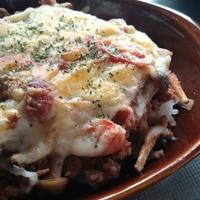 パスタの具の残りを利用しました。ソースが足りなくて熱々とはなりませんでしたしチーズも溶けなかった?