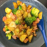 新じゃがで作り、ソーセージとブロッコリーも足しました