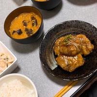 - 5 フライパンにごま油を入れて中火で熱し、3を入れて炒めます。両面に焼き色がつき、中まで火が通ったら、余分な脂をキッチンペーパーで拭き取り、4を加え味を絡めます。照りが出て汁気が少なくなったら火から下ろします。