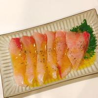 脂のったブリにレモンわさび醤油のソースをかけて食べるカルパッチョはとても美味しかったです❗️
