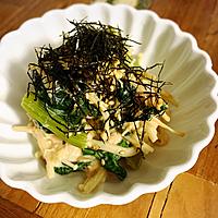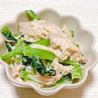 小松菜1袋、ポン酢とマヨは小さじ1ずつ