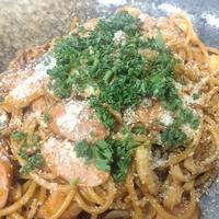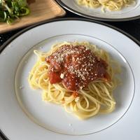 - 6 お皿に盛り付け、粉チーズをかけ、パセリを散らして完成です。