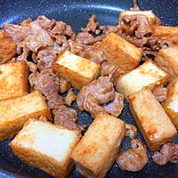 絹揚げを倍量で作りました。肉が少ししかなくても濃い味のメインのおかずが出来るので良かったです。次は絹揚げを先にカリッとするまで焼いてから肉を入れようかなと思います。
