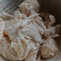 クリームチーズもっと入れてもよかった。アンチョビの塩味がポテトサラダを引き立てていて美味しかったです。